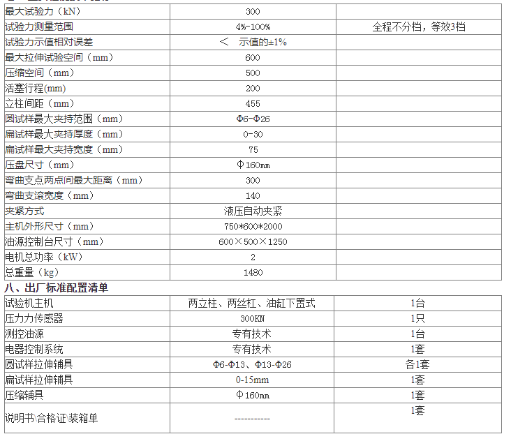 主機為兩立柱、兩絲杠、油缸下置式,拉伸空間位于主機的上方,壓縮、彎曲試驗空間位于主機下橫梁和工作臺之間。測力儀表采用高清液晶顯示屏,實驗數(shù)據(jù)方便直觀。
