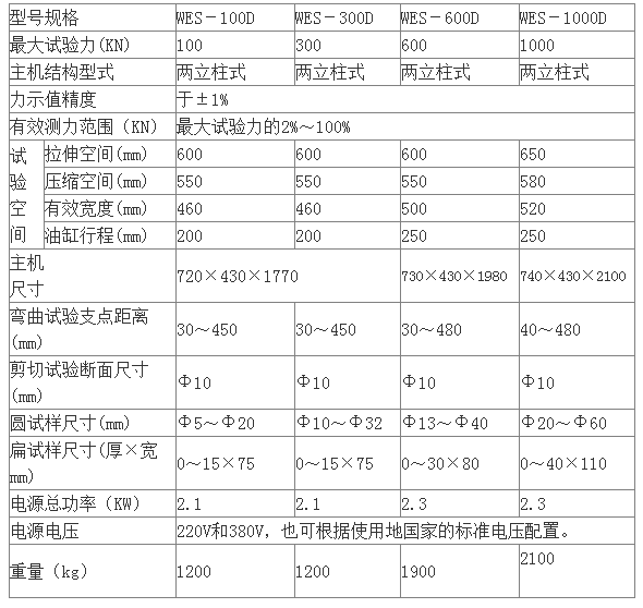 WES-D型數顯式液壓萬能試驗機技術協議
