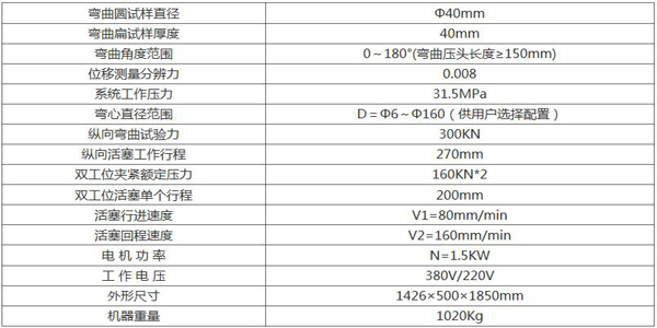 該機配置雙工位,在對試樣進行了冷彎時,一遍成型后,側向輔缸施加壓合力,使試樣過盈彎曲,消除殘余應力,達到卸荷后彎曲角度更精確的等于180°。