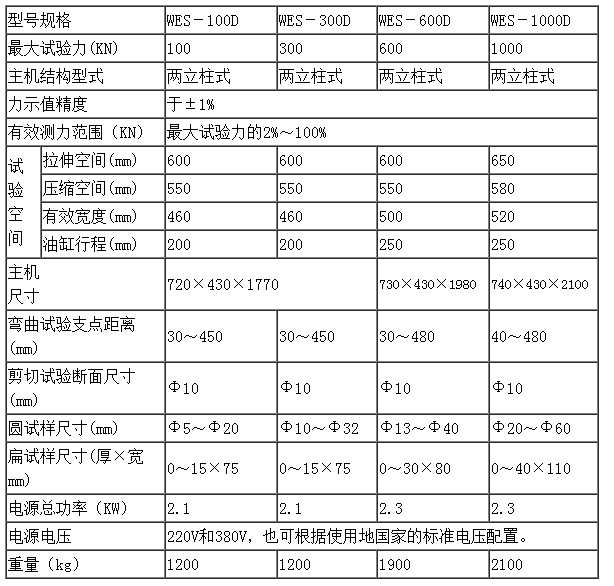 WES-D型數顯式液壓萬能試驗機技術協議